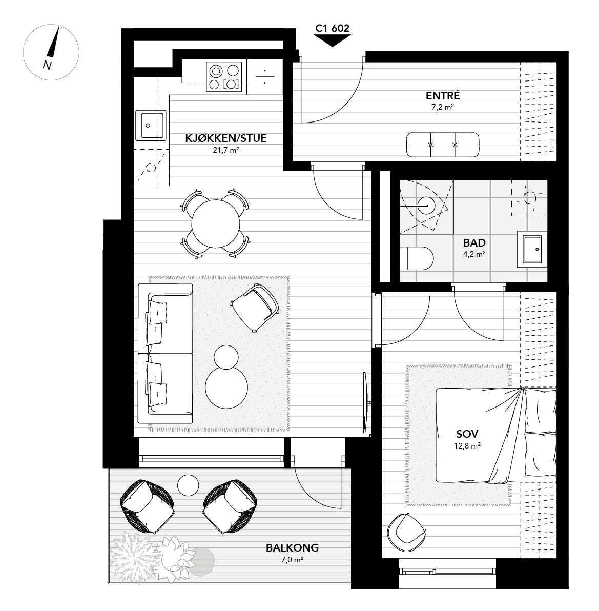 Stor og attraktiv 2-roms med god planløsning. Leiligheten har en innbydende entré med plass til garderobe. Åpen stue- og kjøkkenløsning med fine møbleringsmuligheter. Fra stuen er det utgang til sydvendt balkong perfekt for en kaffe på morgenkvisten eller noe kaldt å drikke en varm sommerdag. Leiligheten byr på et behagelig soverom med god plass til dobbeltseng og garderobe. Lekkert flislagt bad med wc, servant, dusjhjørne og opplegg for vaskemaskin.