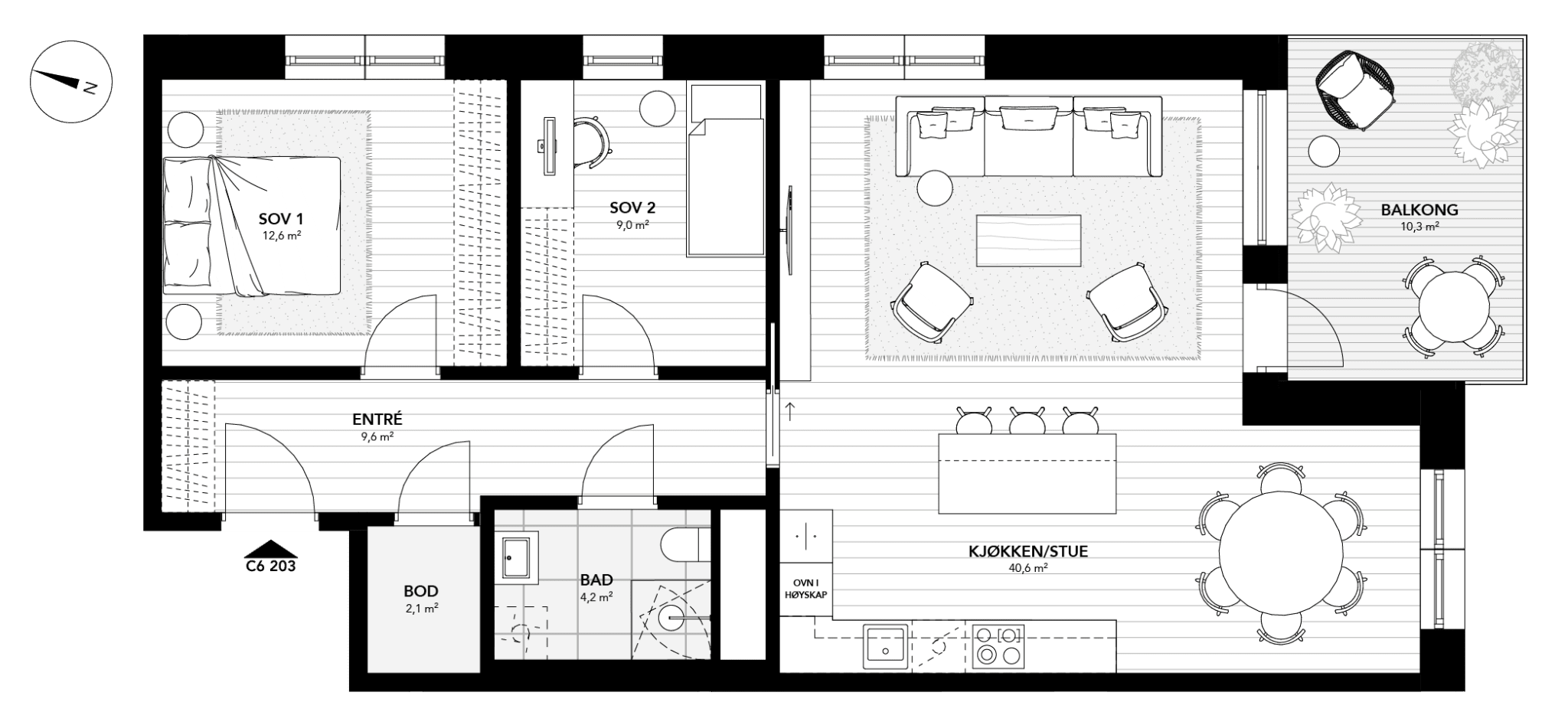 Lekker 3-roms hjørneleilighet med balkong og praktisk planløsning. Leiligheten har en entré med plass til garderobe. Åpen stue- og kjøkkenløsning med god plass til både sofahjørne og spisebord. Leiligheten har to komfortable soverom, med plass til dobbeltseng og garderobe på hovedsoverommet. Delikat flislagt bad med dusjhjørnet, toalett, servant og opplegg for vaskemaskin. Leiligheten har også en praktisk innvendig bod.