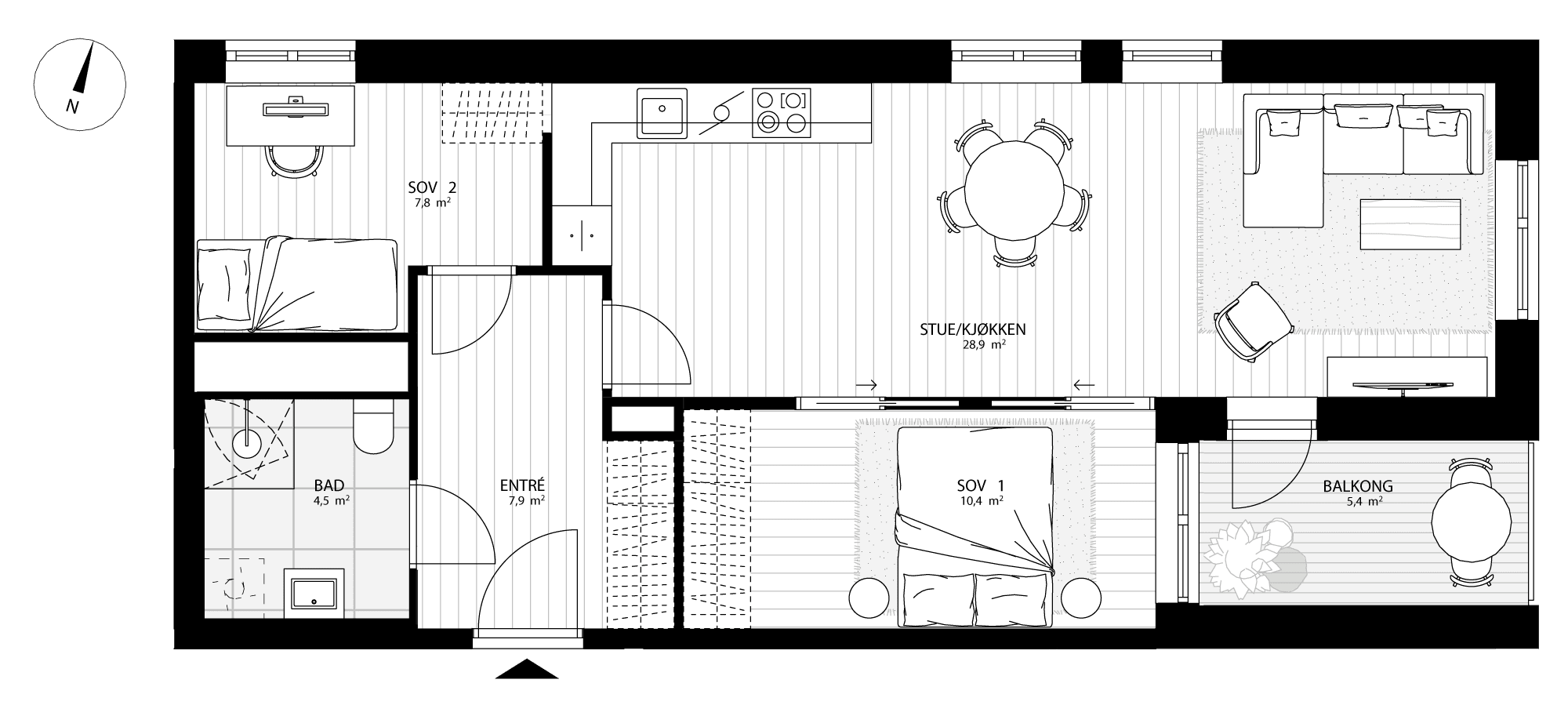 Romslig og innbydende 2-roms leilighet med åpen stue- og kjøkken med øy. Leiligheten får en lys og luftig atmosfære. Fra stuen har du utgang til en fin uteplass. Et komfortabelt og romslig soverom. Bad med delikate fliser med wc, servant, dusjhjørne og opplegg for vaskemaskin. Leilighet B1 501 får takhøyde på 2,9 meter.