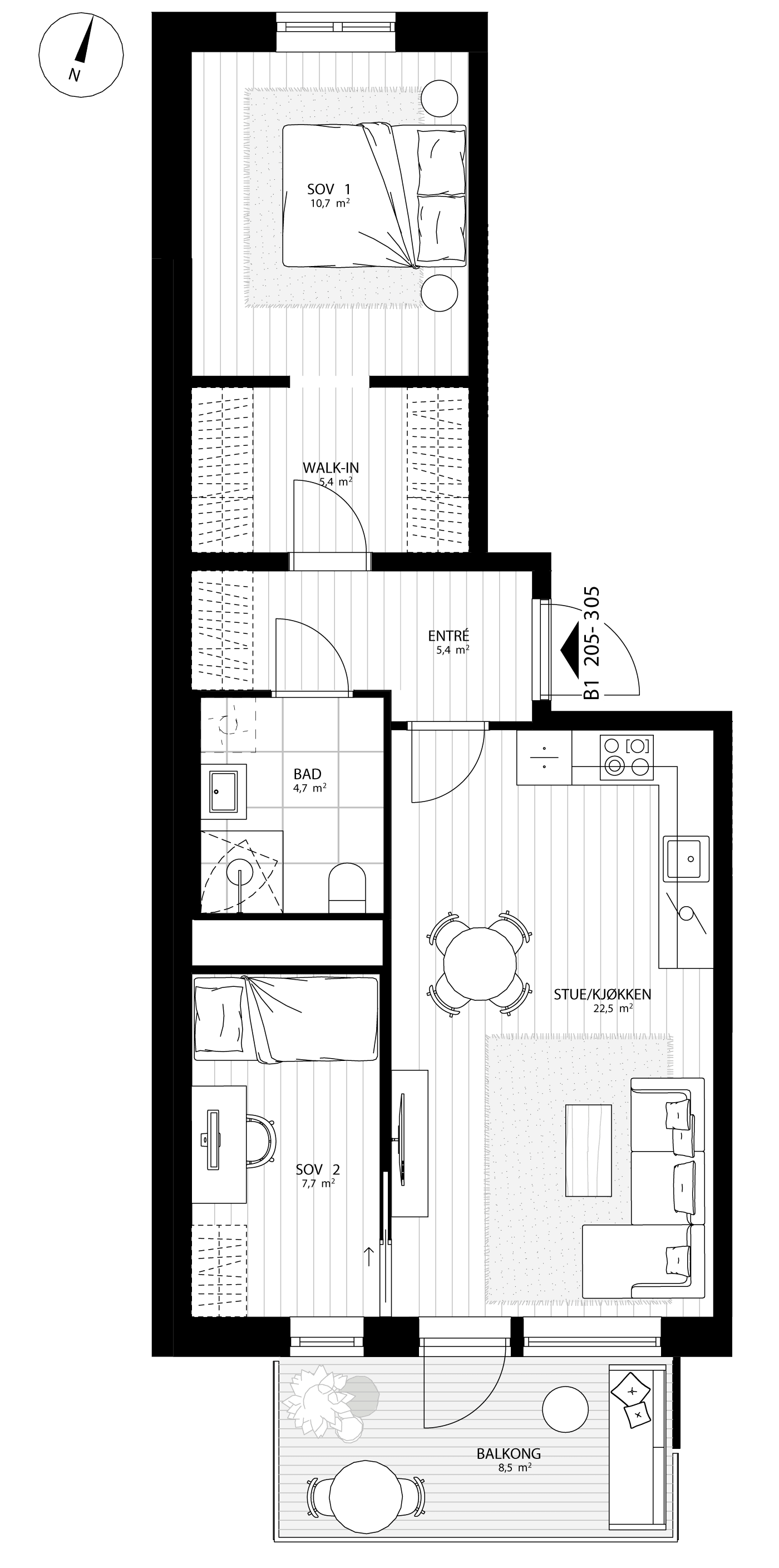 Innbydende og praktisk 3-roms leilighet med rikelig med garderobe- og oppbevaringsplass som gjør hverdagen praktisk. Leiligheten har åpen stue- og kjøkkenløsning med utgang til en koselig balkong. Romslig hovedsoverom med egen walk-in garderobe. Soverom to med med plass til skirvebord. Bad med delikate fliser med wc, servant, dusjhjørne og opplegg for vaskemaskin.