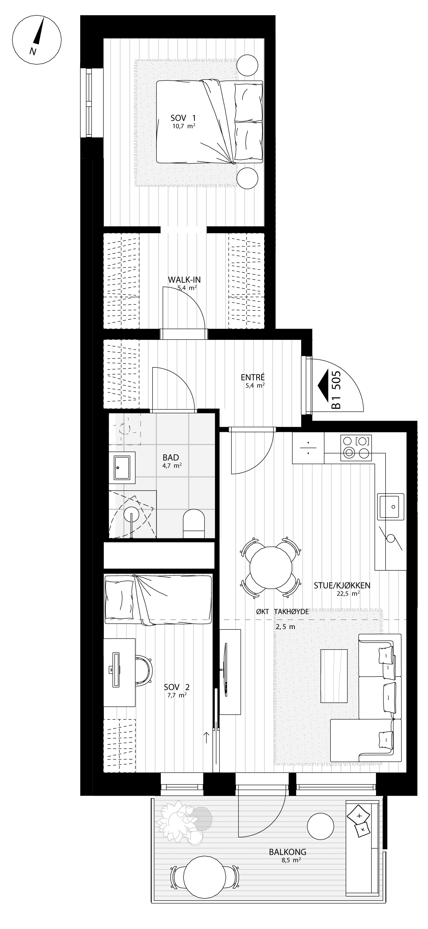 Innbydende og praktisk 3-roms leilighet med rikelig med garderobe- og oppbevaringsplass som gjør hverdagen praktisk. Leiligheten har åpen stue- og kjøkkenløsning med utgang til en koselig balkong. Romslig hovedsoverom med egen walk-in garderobe. Soverom to med med plass til skirvebord. Badet er delikate flislagt med wc, servant, dusjhjørne og opplegg for vaskemaskin.